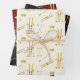 Gold Skis And Poles | Holiday Ski Pattern Wrapping Paper Sheet