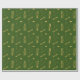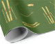 Gold Skis And Poles | Retro Ski Pattern Green Wrapping Paper