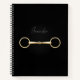 Designed with equestrian elegance in mind, this stylish customisable notebook features a gold snaffle bit on a deep black background. Ideal for riders, trainers, or anyone who appreciates the beauty of traditional horse tack. Personalise it with your name for a special touch!