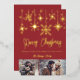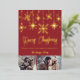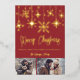 A modern gold snow and hanging snowflakes in real gold foil 2 photos family elegant christmas season greeting card on red.