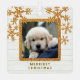 Featuring 2 of your favourite photos, these personalised photo Christmas ornaments make lovely keepsake gifts for friends and family and this elegant faux gold snowflake and faux rustic white wood design adds a little farmhouse charm to your décor while highlighting your treasured family pictures. Easy to personalise, these custom photo ornaments have simple photo and text templates, front and back, that let you add a different photo to each side and customise the dark yellow gold text separately as well. If you would like your ornaments without text, just delete and clear the placeholder text to remove it. Upload your treasured photos and watch them become part of this cute design, with slightly rounded corners and bordered in faux gold glitter frames also with rounded corners to mimic the shape of these square metal Christmas ornaments. Accented with five faux gold glitter snowflakes falling across the top of these aluminium holiday ornaments and printed just for you, these gold snowflake and rustic wood photo ornaments are fantastic keepsakes of Christmas for both kids and adults alike.
