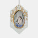 Design your own custom photo glass ornaments, printed just for you, and create treasured Christmas keepsakes for family and friends. This chic faux gold glitter snowflake design features your photo turned into a round image rimmed in a faux gold frame, set on a background of faux rustic white wood for a touch of farmhouse Christmas charm. Just add your photo using the easy template and watch it become part of this gold snowflake design. Personalise this unique hexagon glass ornament with your text at the bottom in a dark gold tone font which is balanced by the nine tiny faux gold glitter snowflakes drifting across the top of the ornament. Personalised ornaments are perfect to commemorate baby's first Christmas, the first holiday as a married couple or as a cute way to display photographs of pets or family vacations. Customise these unique faux gold glitter snowflakes Christmas ornaments with your photos and make your own personalised gifts that are sure to bring smiles.