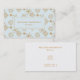 Christmas Business cards with with a festive holiday repeating pattern of chic gold snowflakes drawn with elegant crystal shapes. A frosty light blue background. A blue rectangle with a gold border layered over top with your name and title/job.
