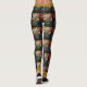 Holiday leggings with gold filagree snowflakes on red, blue, green images of velvet with one white snowflake on an image of gold velvet. Together they are repeated into a richly coloured festive holiday pants.