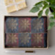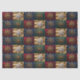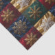 Tissue paper with gold filagree snowflakes on red, blue, green images of velvet with one white snowflake on an image of gold velvet. Together they are repeated into a richly coloured Tissue paper.