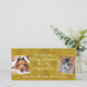 Multi-photo Christmas cards in gold with snowflakes design. Horizontal cards have two square photo templates on each end with bold greeting text in the middle. Sample wording is, “We wish you a Merry Christmas and a very happy new year”. Include pictures of the kids, family or pets which are framed in yellow gold frames.