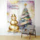 Gold Snowman Christmas Tree Holiday Backdrop Tapestry