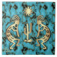 Brighten Your Home with this Unique "One of a Kind" Southwest Kokopelli Ceramic Tile! It Features a Two Gold and Black Southwest Kokopelli Playing the Flute and Dancing Around a Cactus Under the Sun on a Turquoise, Black and Gold Stone Background!