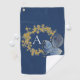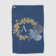 Gold Sparkle and Blue Leaf Monogram Add Your Name Golf Towel