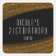 Gold Sparkle Glitter & Black Party Favour Stickers. Customise with any text. Matching items available.