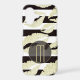 Beautiful and glamourous for her, this phone case features a pattern of light gold sparkly lip images on a black and white striped background. Your monogram is at the lower centre in light gold, placed on a semi transparent circle banner that is also lined in thin gold. She will love this case!