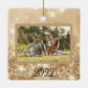 The luminous gold sparkle background creates a stunning backdrop for your most cherished family photos. Designed to be a customisable Christmas ornament, it allows you to feature not just one, but two special moments, making it a unique and meaningful addition to your holiday traditions.