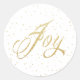 Chic luxe design, perfect for your holiday gift giving or family photo sending needs. Features cursive handwritten script "Joy" in gold with a gold sparkles background.