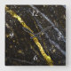 Gold sparkly line on black rock with clock face
