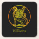 Round gold sphinx graphic on black background with customisable text - add name, business name or other special message