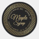 Prominent border with metallic gold gradient on black background. "Maple Syrup" is written in an elegant script font and the descriptive text is written in a fancy modern serif. Choose your volume from a list of pre-calculated common sizes.