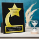 Give this elegant plaque to employees, staff, students and workers for a job well done. Easily customise it online with your personalised details. Order just one or many, no minimum quantity required. features gold-tone star trophy design on black background. Great for a corporate gift, customer service award, student achievement award or any use!