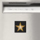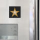 Modern design with a "shining" gold and white star on a black background. Fridge magnet with a customisable design for you to personalise with your own text, images and ideas. Please note that this is a printed image created using original photographs and digital techniques, it does not shine or contain real sparkles.