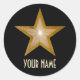 Modern design with a "shining" gold and white star on a black background. Sticker with a customisable design for you to personalise with your own text, images and ideas. The text can easily be changed using the template provided or click the 'Customise It' button to make further alterations. Please note that this is a printed image created using original photographs and digital techniques, it does not shine or contain real sparkles.