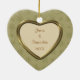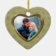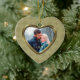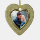 This holiday keepsake ornament features your own photograph within a pretty gold geometric star pattern frame which has an inside gold lining. The other side has the same gold star border with additional text on the light gold tan interior. An elegant and festive keepsake gift for newlyweds, any couple, or for any portrait photograph. To position your photo for the best appearance after it is uploaded, use "Customise it", the arrow indicators, and plus or minus to size it.