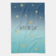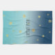Gold Stars Aqua Blue Ombre personalised quote Tea Towel