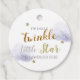 This cute "twinkle twinkle little star" baby shower thank you favour tag features white background with a faux gold glitter stars and fluffy clouds in lavender purple. The reverse side features a light grey background with faux gold glitter star patterns. Change the background colour and personalise for your needs. You can find more matching products at my store.