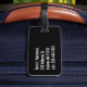 This was purchased as part of a 40th Birthday present for my nephew who is going to Vegas. It is made of high quality, very study and we decided only to put his name on the back of the tag, but you can add a full address if you so wish.