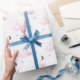 This cute wrapping paper features white background with faux gold glitter stars and the crescent moon, and fluffy pink clouds. Change the background colour and personalise it for your needs. You can find matching products at my store.