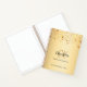 A faux gold looking background, black text. Decorated with golden stars. Personalise and add your first name, monogram initials and full name, a title.
