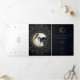 Gold Stars Night Celestial Sunburst Photo Wedding Tri-Fold Invitation
