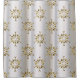 An elegant Christmas shower curtain featuring a festive pattern of large gold snowflake stars scattered over a metallic silver background, to add a touch of colour and class to your bathroom and holidays this year.