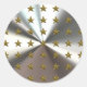 Pattern of 3d look gold stars repeated is added to these cool, cute sticker seals on a silver burst design and are the perfect stickers for this popular round shape. Great for teachers to give their student kids! Great for kids, teens, men and women of any age. Make nice fun, unique gift tags and party favours for achievement, success, awards, excellence, birthdays, holidays, christmas, hanukah, anniversary parties, graduation, etc. too!