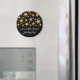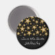 Modern design with "shining" gold and white stars on a black background. Fridge magnet with a gold and white customizable design for you to personalise with your own background colour, text, images and ideas. Please note that this is a printed image created using original photographs and digital techniques, it does not shine or contain real sparkles. To change the background colour: Click the 'Customize it' button. Go to the 'Customize it' box on the right hand side and click 'Edit'. Click on 'Background' in the drop down menu, this opens the colour chart and you can click on your choice of colour.