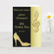 Women's personalised, elegant custom birthday thank you cards for birthday parties with glitz and glamour.With a stunning glamourous printed image rhinestones, glitter, sequins, diamonds bling jewels sparkle high heels stilettos fashion shoe, and glittery silver and gold treble cleft on a black and gold background. Chic, classy, cute, girly, modern thank you cards for birthday's in trendy, fashionable colours / colours. This is a groovy, fancy, stylish, sophisticated, pretty, girlie design. PLEASE NOTE: All products on Zazzle have flat printed images.