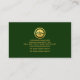 Overleaf, in an emerald green cover, details are at the centre. At the top is the gold logo, contact details and two slogan caption options for you to publicise your services. All lettering are in faux gold.