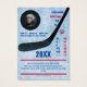 Create your own customisable hockey trading card by adding your own photo and hockey stats. The back of the card features ice marked by skate blade as a background, along with a black hockey stick. 100 cards per pack which leaves you enough to hand out to friends and relatives as keepsake momentoes (grandparents will love it), or for your minor league hockey player to trade with his teammates if they also have their own customised set. For best results, use a square photo when adding image to back of card.