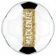 Yellow Gold glitter sparkle stripe personalised soccer ball featuring a unique and simple pretty feminine custom monogram name that can also be personalised with a team name, nickname, photo, or initials for your star soccer player.
