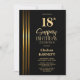 Gold Striped Black 18th Surprise Birthday Party Invitation