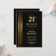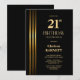 Gold Striped Black 21st Birthday Party Invitation
