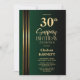 Gold Striped Black Green 30th Surprise Birthday Invitation