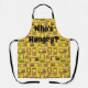 This apron has a mid-century modern design of rounded rectangles in shades of green and brown with holes in them on a field of gold. If you like the design but prefer different colours, message me.