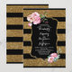 Pink watercolor flowers and gold glitter stripes - elegant vintage black engagement party invitations