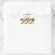 Stylish Wedding Favour Stickers with a Gold and White Stripes Pattern, with PRINTED photo of a gold satin ribbon and diamond brooch, personalised with Monogram, Initial Names and Wedding Date. Elke Clarke© for Monogram Gallery. For different colour combinations please contact luxuryweddinginvitations@gmail.com