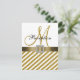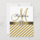 Gold and White Monogram Wedding Reception Invitation with a diagonal stripes pattern and a PRINTED gold satin ribbon and a PRINTED square diamond brooch on a square flat card design. Layout Design by Elke Clarke ©2012. Graphics licensed. Customise with your monogram names and wedding reception invitation text using the prompts or select "customise it" for more editing options. Brides love the embellished invitations with jewels and ribbons until they get to the post office and realise that the invitations will cost so much more to send to their guests. These invitations and wedding packet accessories have the photo of the satin ribbon and the diamond brooch PRINTED on the flat card. You end up with the elegant effect without the extra cost and work of assembling your invitations. Please contact luxuryweddinginvitations@gmail.com for other colours or help with your design or any matching items you require.