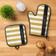 Gold Stripes, Striped Pattern, Lines, Your Name Oven Mitt & Pot Holder Set