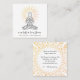 A yoga instructor business card featuring a serene woman in lotus pose surrounded by gold rays of sunlight, with her name in a pretty modern script signature type. Type in the centre of sun rays on the reverse side of the card.