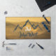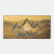 Gold sunrise personalizable mountains monogram. Vector drawn mountains in grey blue colour with a personalizable monogram and your name. In te background a stunning gold sunrise with fog in the valley and sun rays. Great gift from someone who loves mountains.
