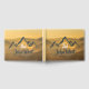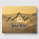 Gold sunrise personalizable mountains monogram. Vector drawn mountains in grey blue colour with a personalizable monogram and your name. In te background a stunning gold sunrise with fog in the valley and sun rays. Great gift from someone who loves mountains.