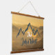 Gold sunrise personalizable mountains monogram. Vector drawn mountains in grey blue colour with a personalizable monogram and your name. In te background a stunning gold sunrise with fog in the valley and sun rays. Great gift from someone who loves mountains.