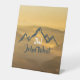 Gold sunrise personalizable mountains monogram. Vector drawn mountains in grey blue colour with a personalizable monogram and your name. In te background a stunning gold sunrise with fog in the valley and sun rays. Great gift from someone who loves mountains.